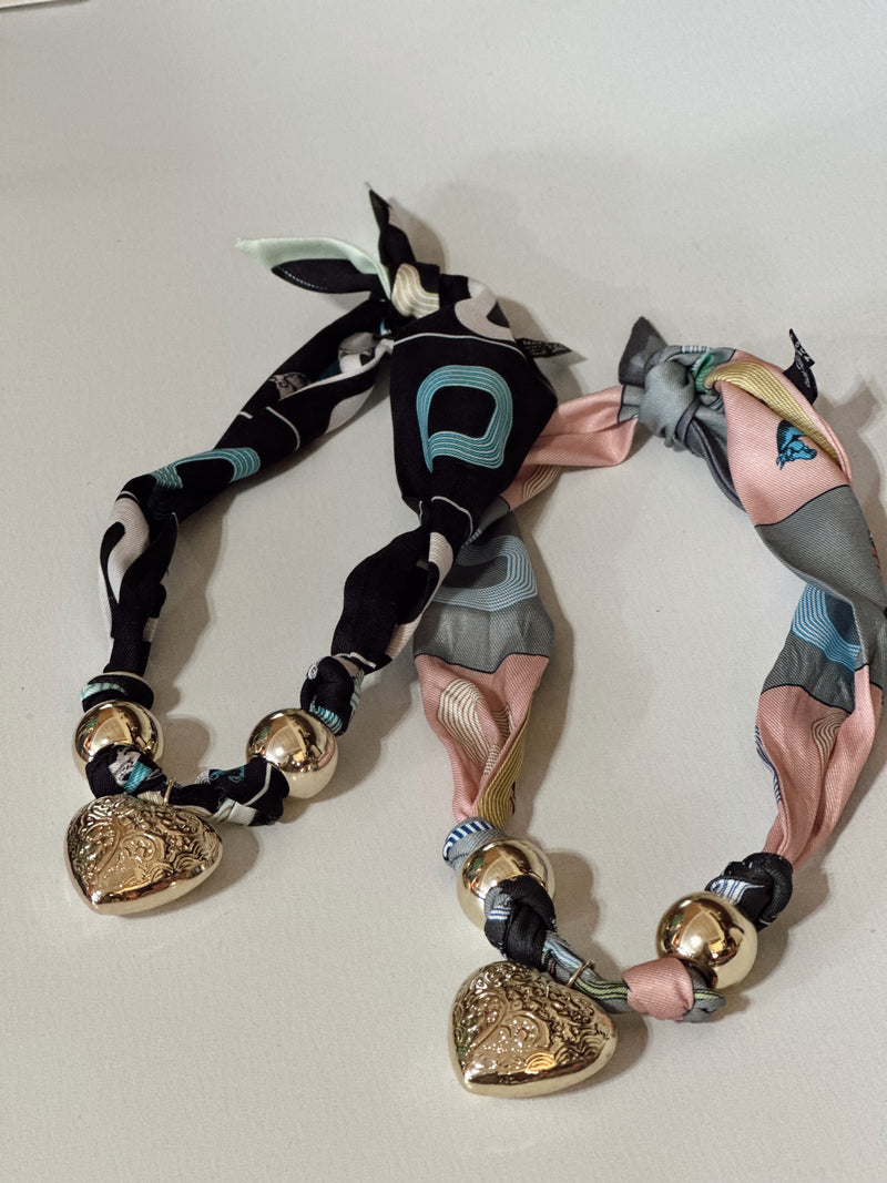 Asst Puffed Heart Floral Scarf Necklace