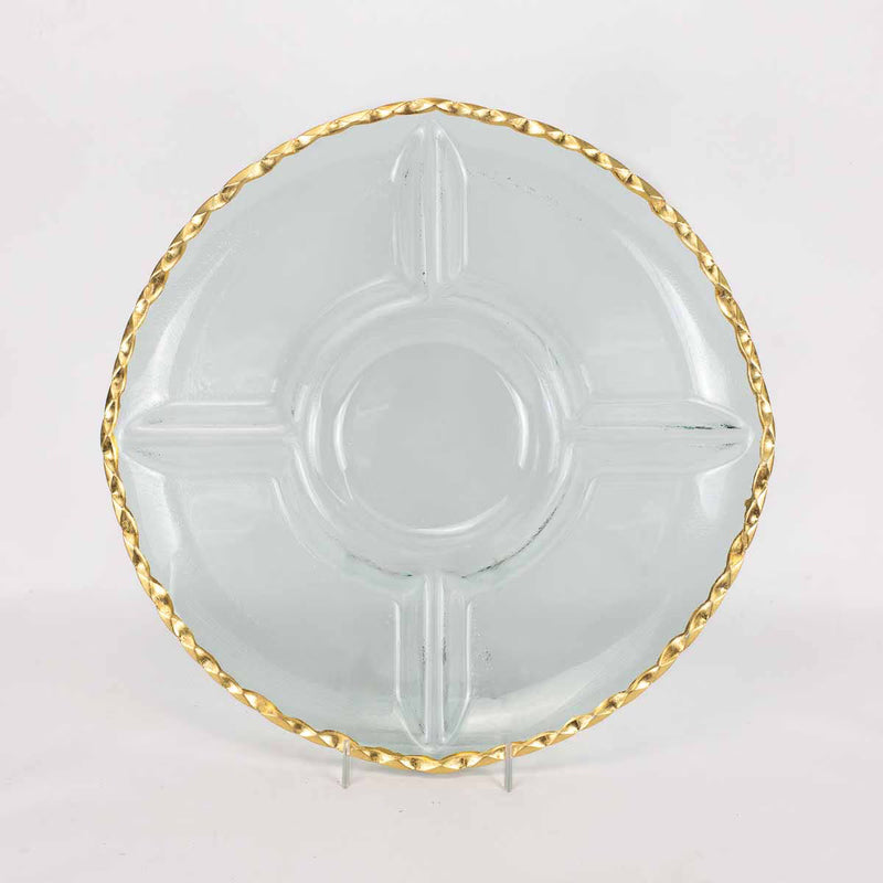 Cordova Gold Trimmed Glass Chip & Dip Serving Tray