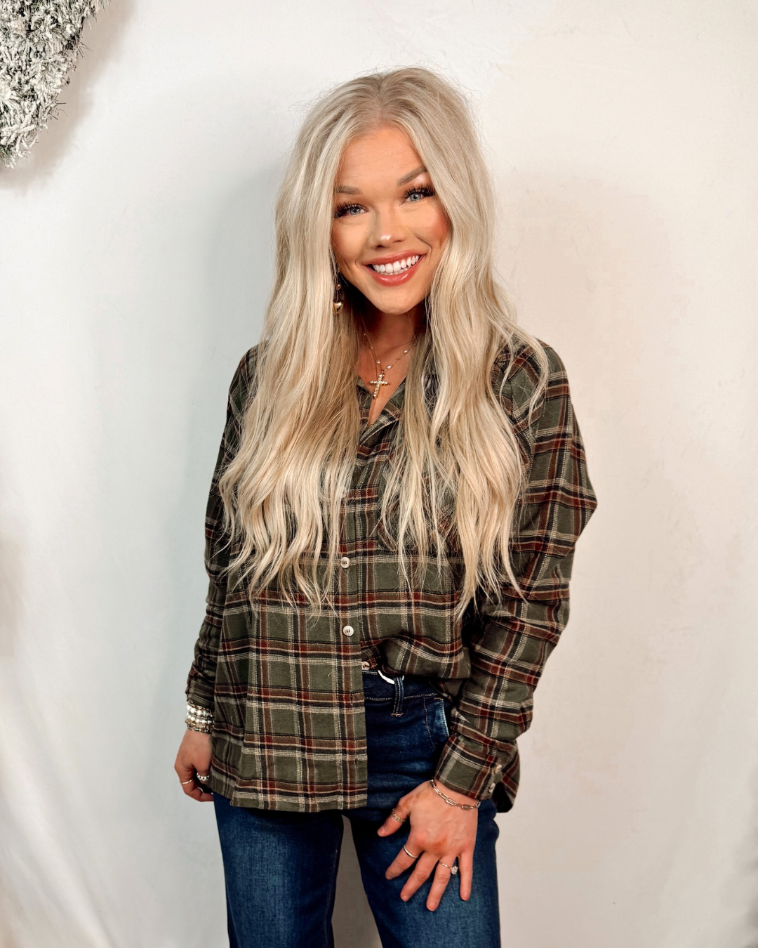 Georgetown Long Sleeve Button Up Flannel - Olive