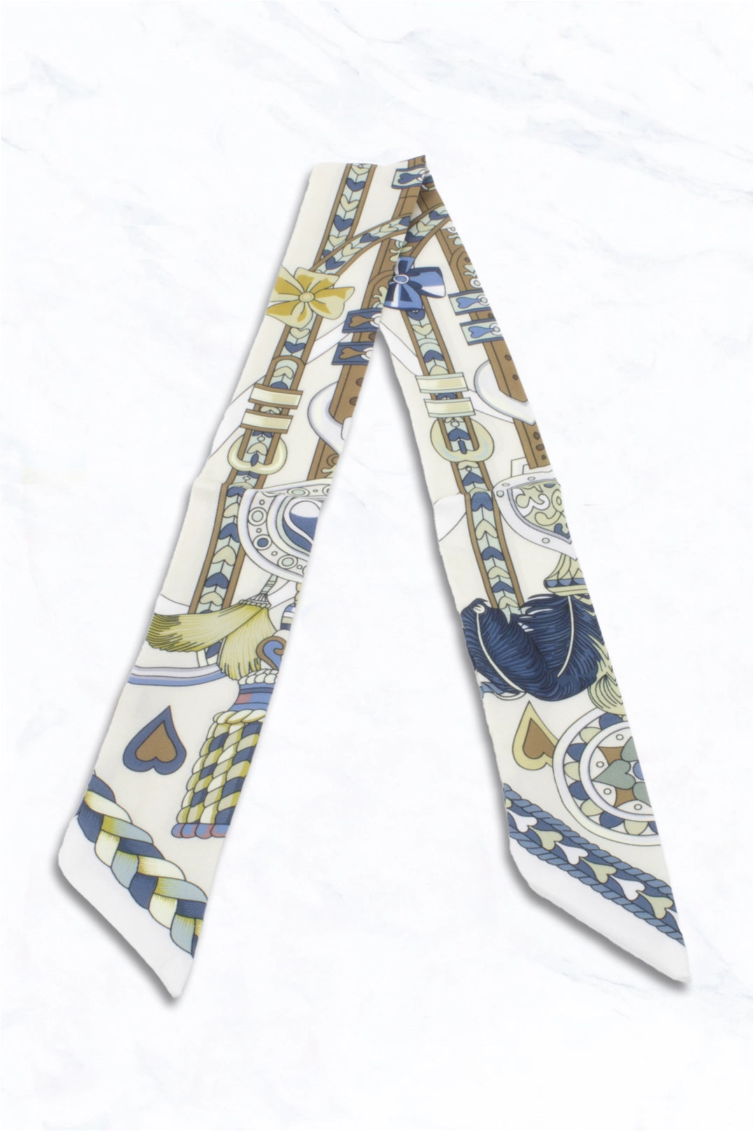 Perfect for wearing as a scarf, a belt, knotted with a charm and turned into a necklace or even wearing it as a purse scarf. THe options are endless with these precious new multipurpose satin scarves.