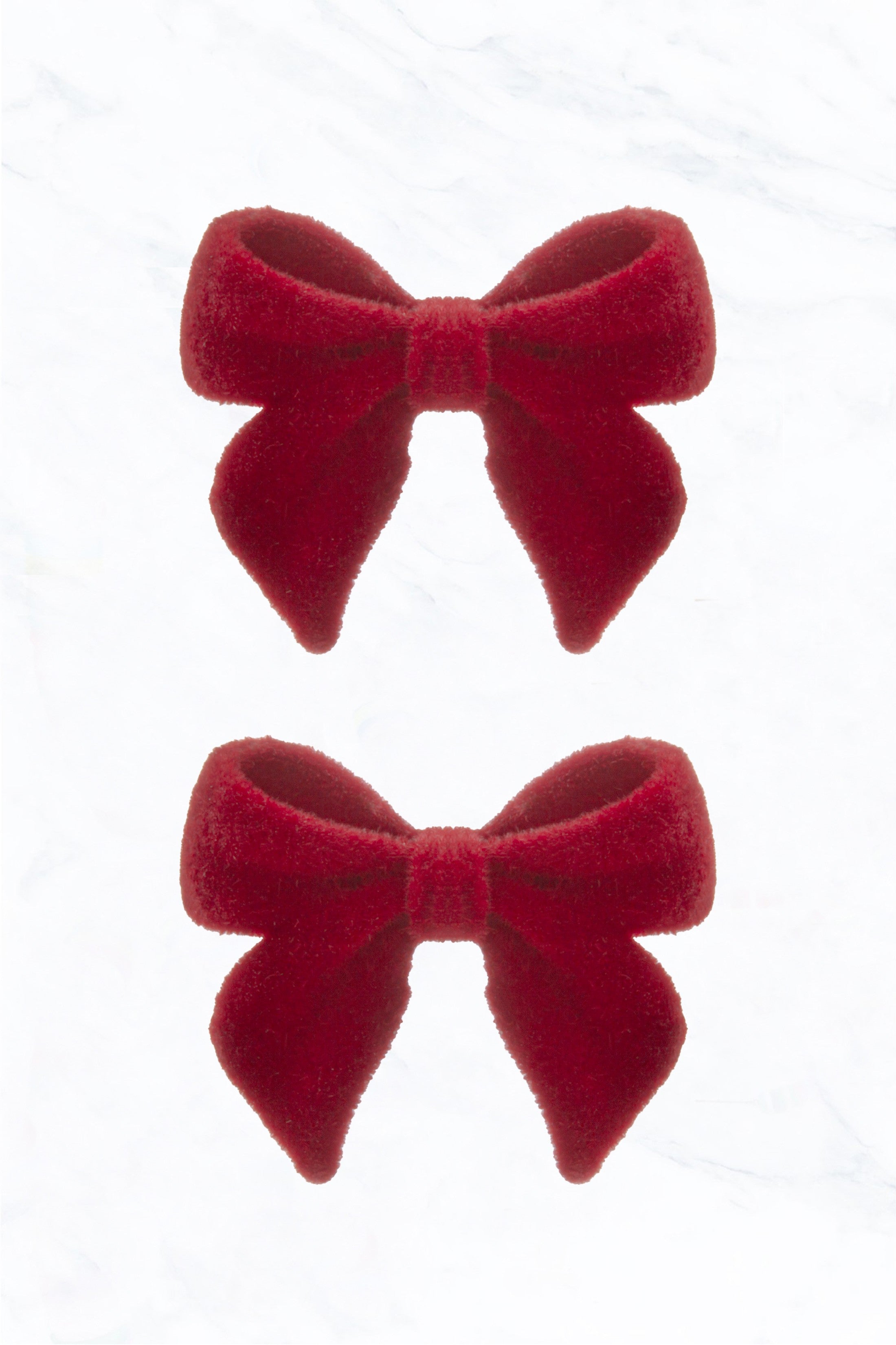 Soft and cozy velvet bow earrings - perfect for any holiday festivities or as a gift.