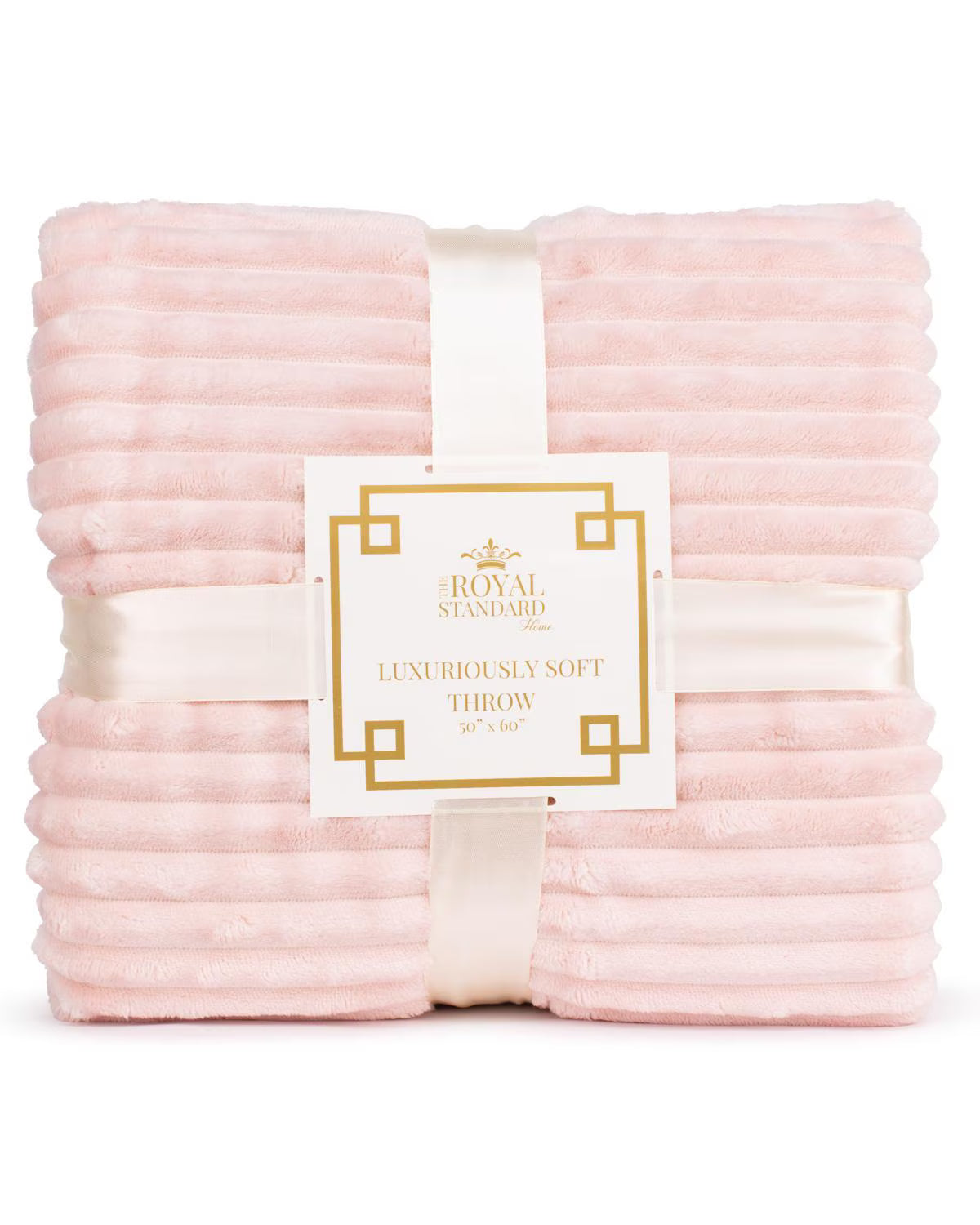 Luxuriously Soft Larissa Pink & White 50" x 60" Throw Blanket