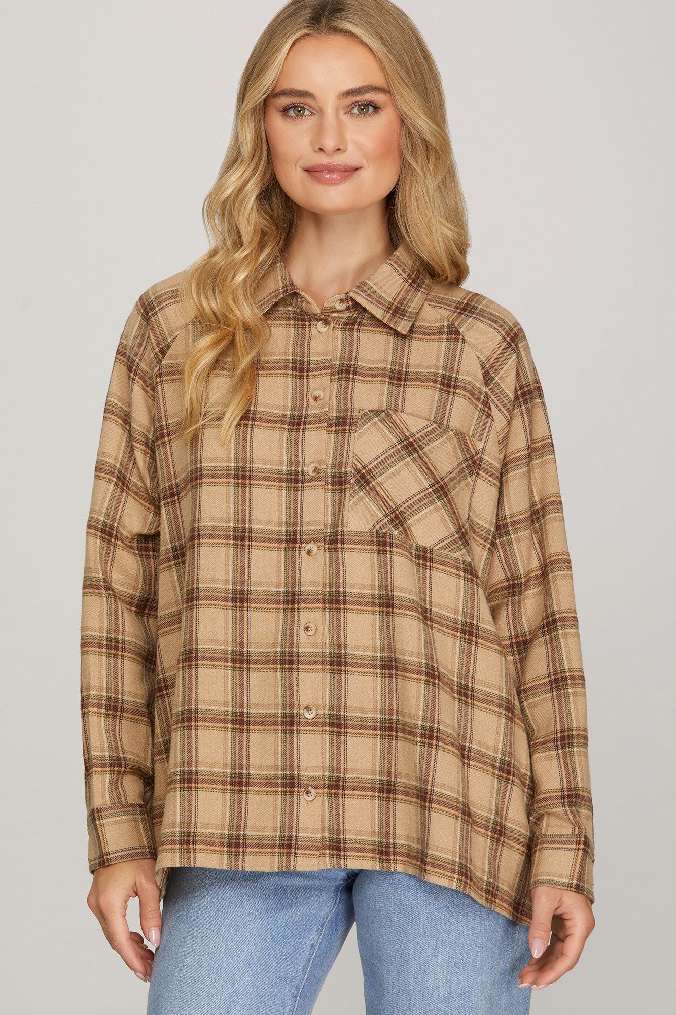 Georgetown Long Sleeve Button Up Flannel - Taupe